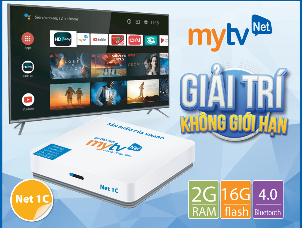 ANDROID TV BOX MYTV NET PHIÊN BẢN 1C MỚI NHẤT NĂM 2021 RAM 2G, ROM 16G - Có Bluetooth