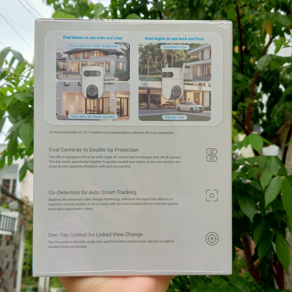 EZVIZ H9C 6MP - Dual 2K + 2K (4608 × 2,592 | Mắt trên Cố Định, mắt dưới xoay 360 | Đàm thoại | Có màu ban đêm | Lắp ngoài trời)