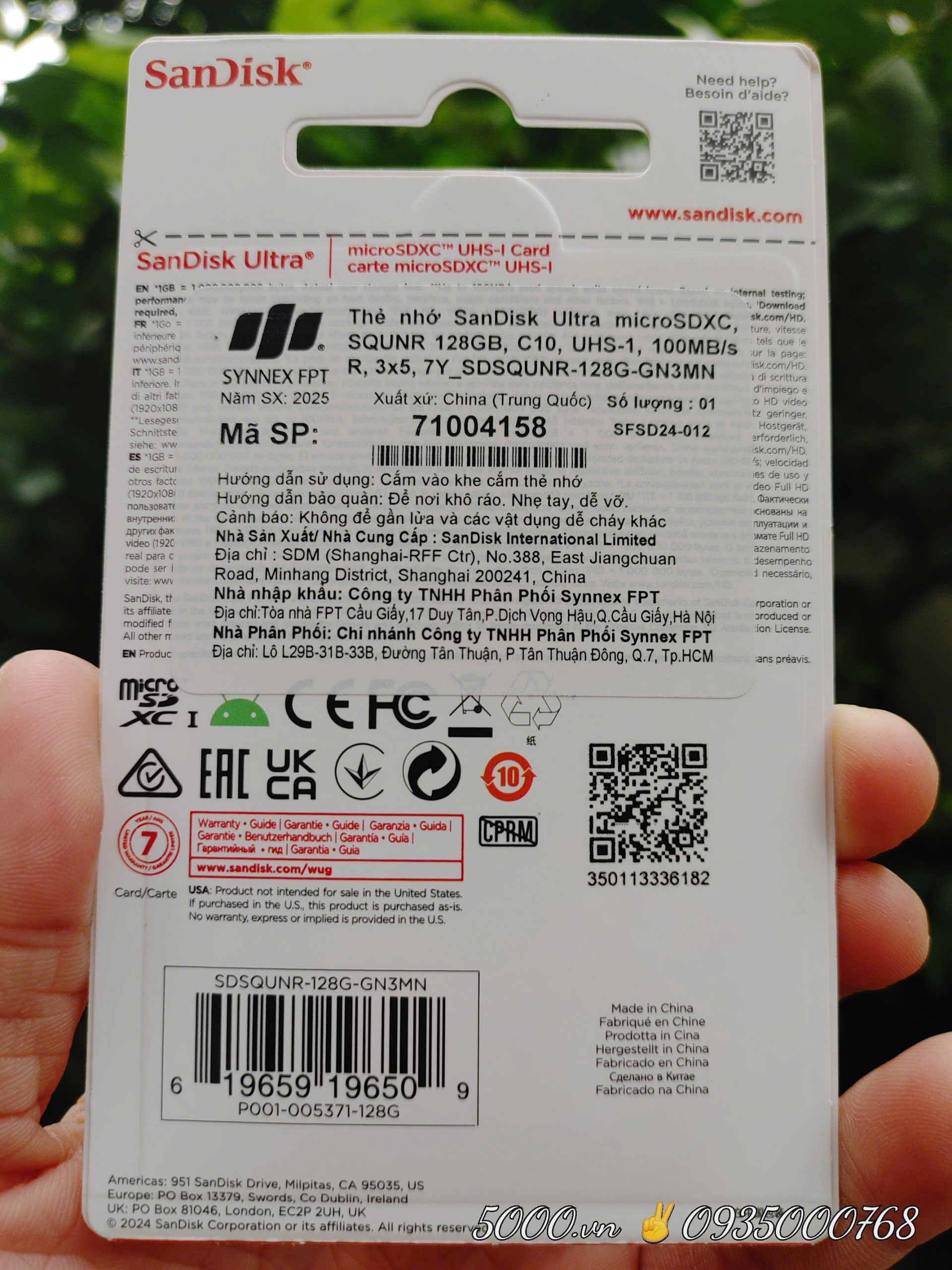 – Thương hiệu : Sandisk (Mỹ) - Gia công tại Trung Quốc